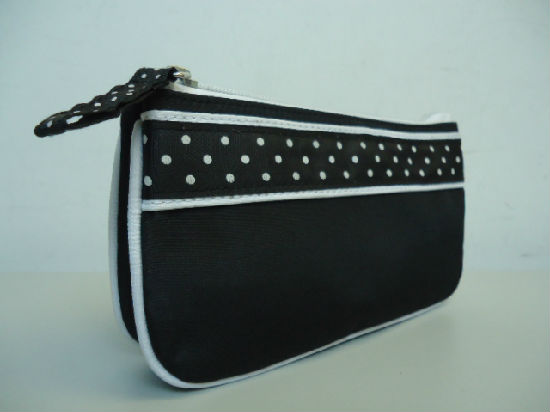• Dot printed micro fiber two compartment small cosmetic bag.