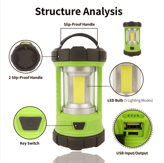 Oversized 4400mAh capacity and USB out port allows the camping lights to charge