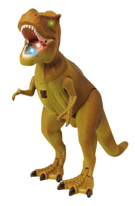 • T-rex features a moving head, glowing eyes, realistic roaring sound, and walking motion