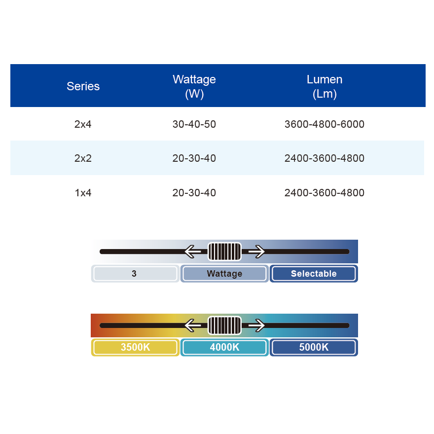 • 3 Wattage & 3 CCT , selectable good for inventory management