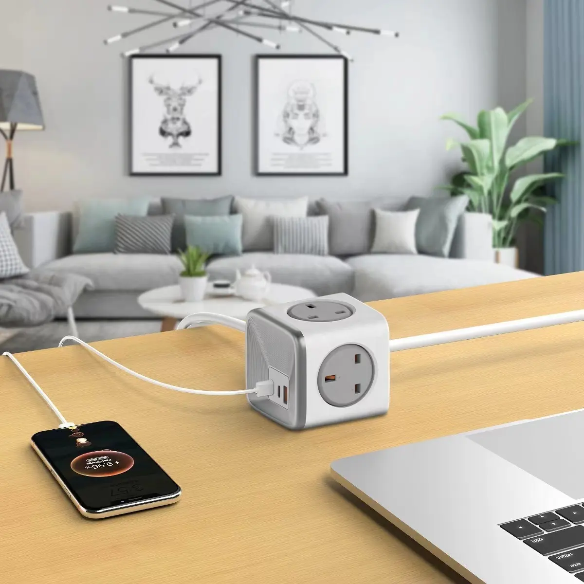 This is a Powercube that can be charged quickly. It is small and safe. lt can be freely combined, with the number of outlets increased or decreased according to actual needs. It can be easily placed under or next to desks, providing ample power supply for various electrical devices.