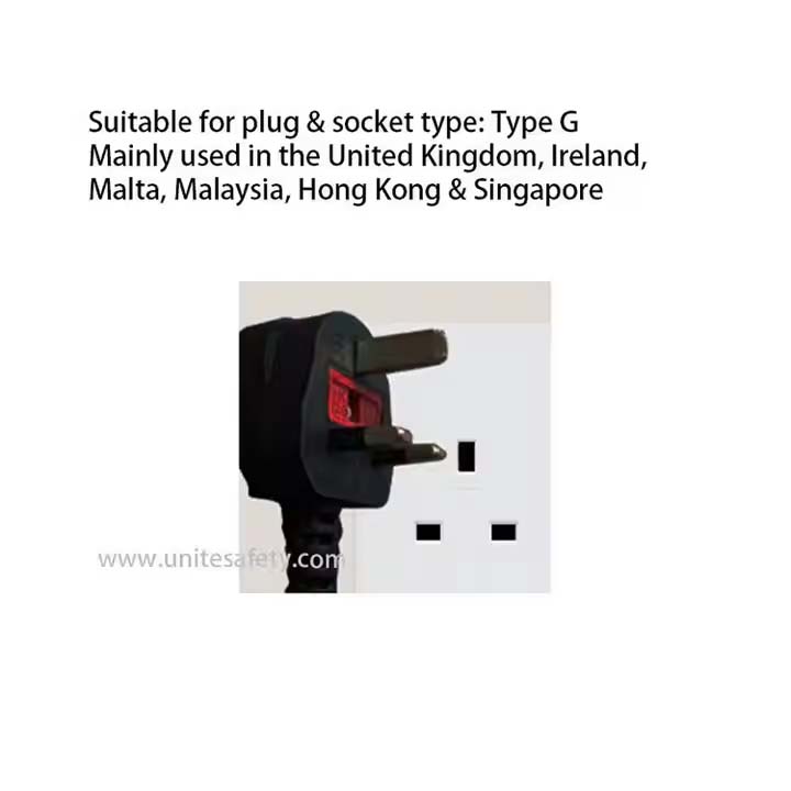 A "child-proof" designed socket plug, which fits the common socket types in the UK, Hong Kong and some other countries in Europe.