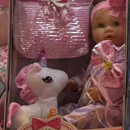 UNICORN WITH BABY DOLL AND BAG SET