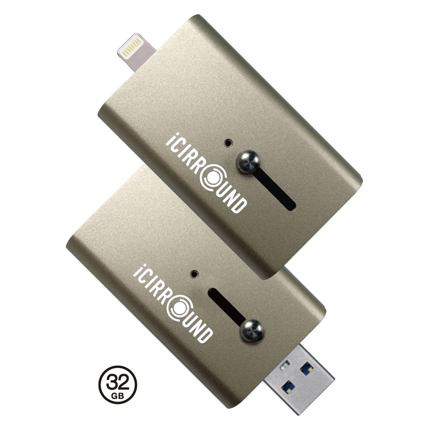 This 32G lightning to USB 3.0 flash drive flaunts a stylish and compact design. It comes in a metallic toned rectangular shape and is adorned with the brand name. The flash drive offers a high capacity and a fast transmission speed.