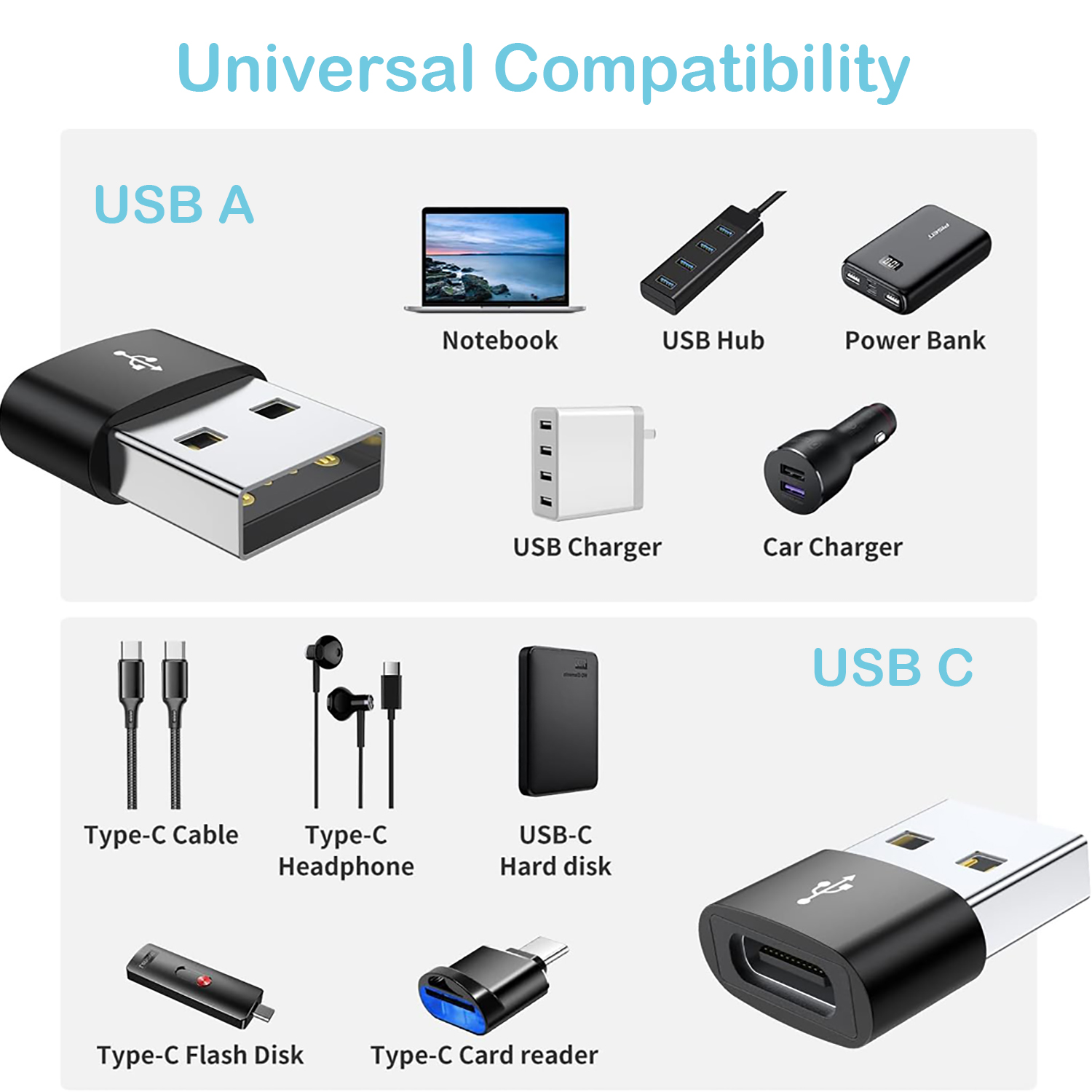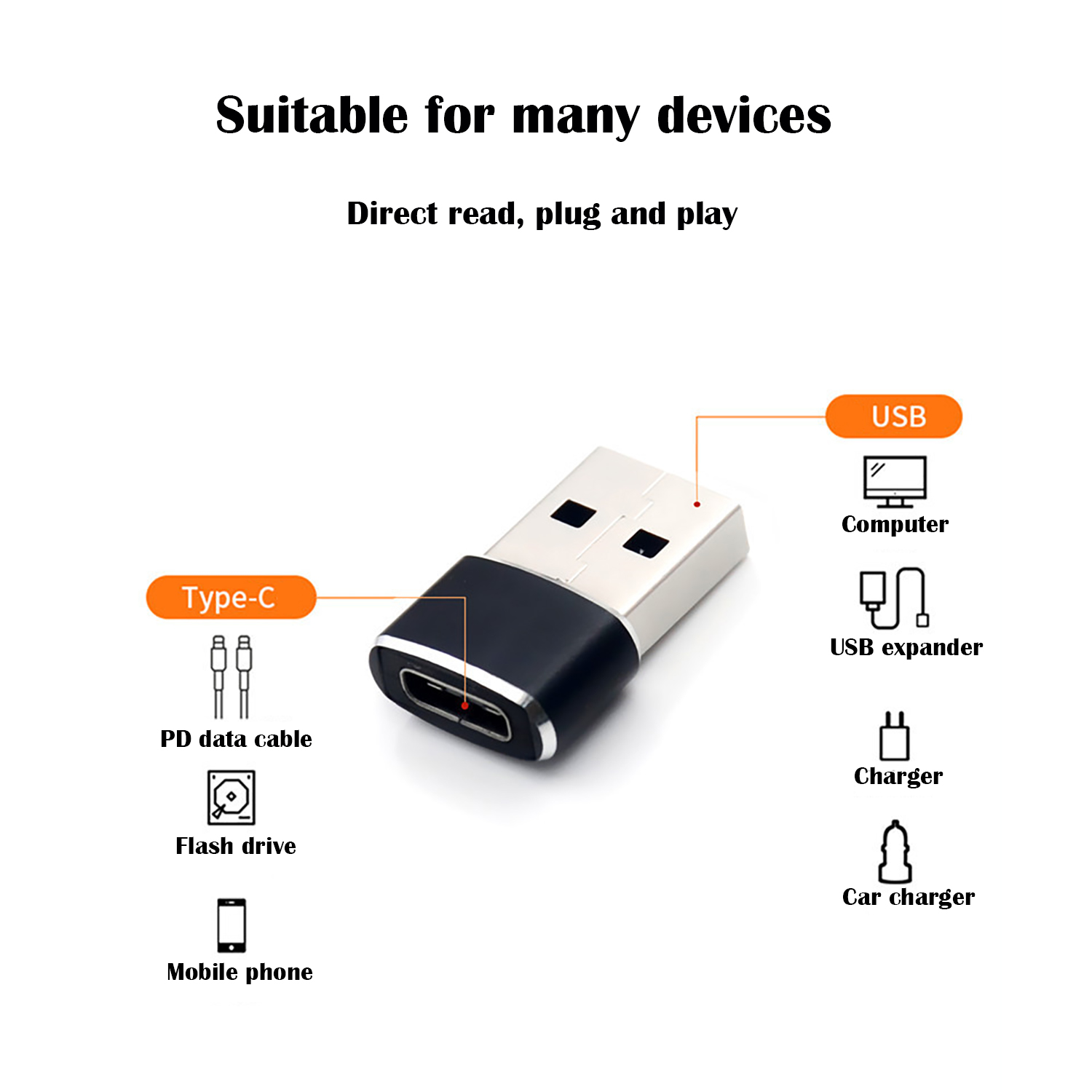 ⚡ Gives you the ability to connect USB-C peripherals to devices with USB-A ports built in.
