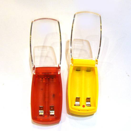 This is an USB battery charger. The charger can be connected with USB cable and port. It accommodates two AA or AAA battery at a time.