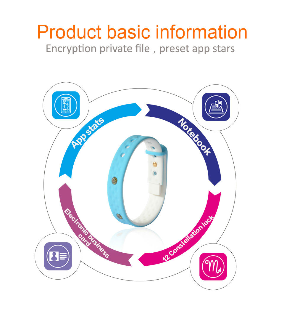 • Waterproof + 12 constellations magic band+ energy stone + NFC + E-card + notebook healthy fitness smart OTG USB wristband