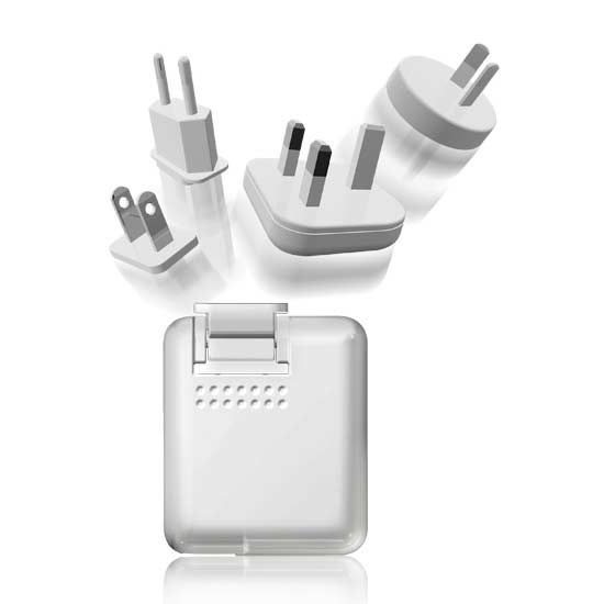 This USB charging kit comes with a wall-mount AC/DC power supply with dual 5V DC 500mA USB charging ports. The kit includes a set of interchangeable AC power plugs for the US, Europe, the UK and Australia. The kit allows you to charge your devices in over 150 countries.