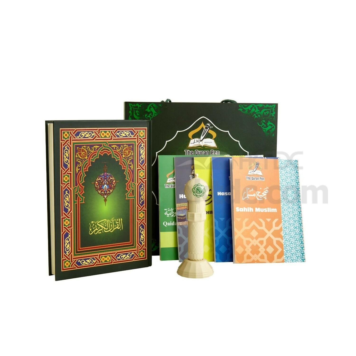 - The pen can read any page by simply touching the text in the Quran.