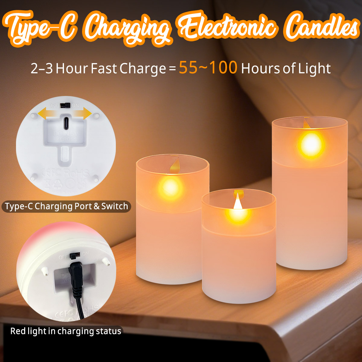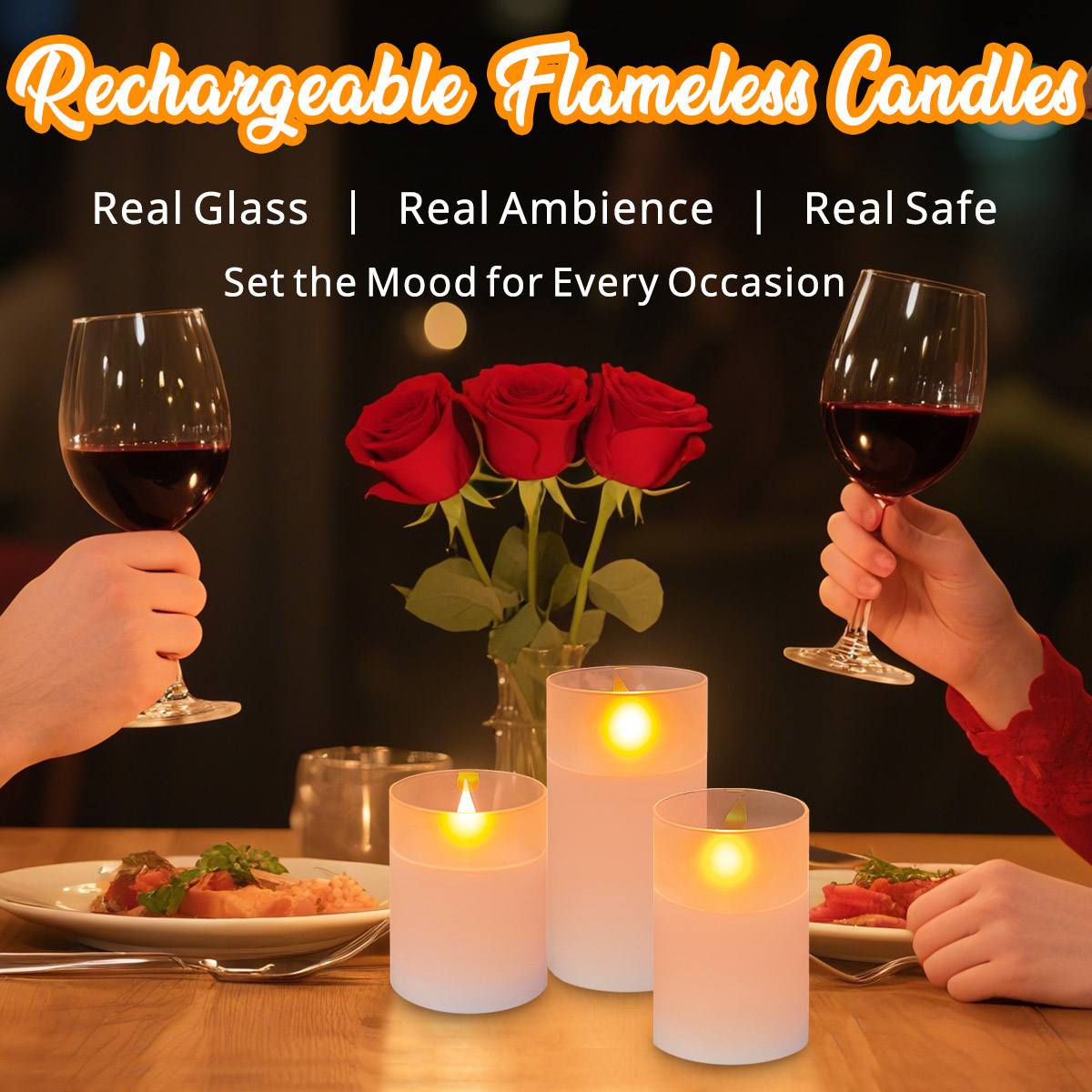 USB Rechargeable Flameless LED Candle Set with Remote Control Christmas Decoration Lamp with Light Timer Dimmer for Weddings