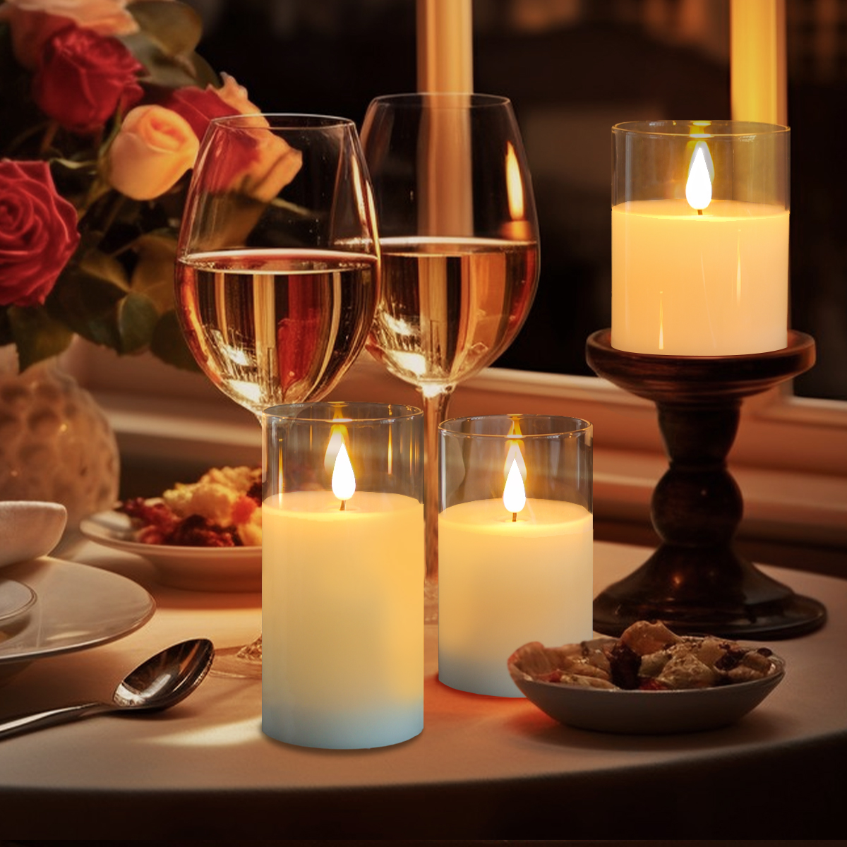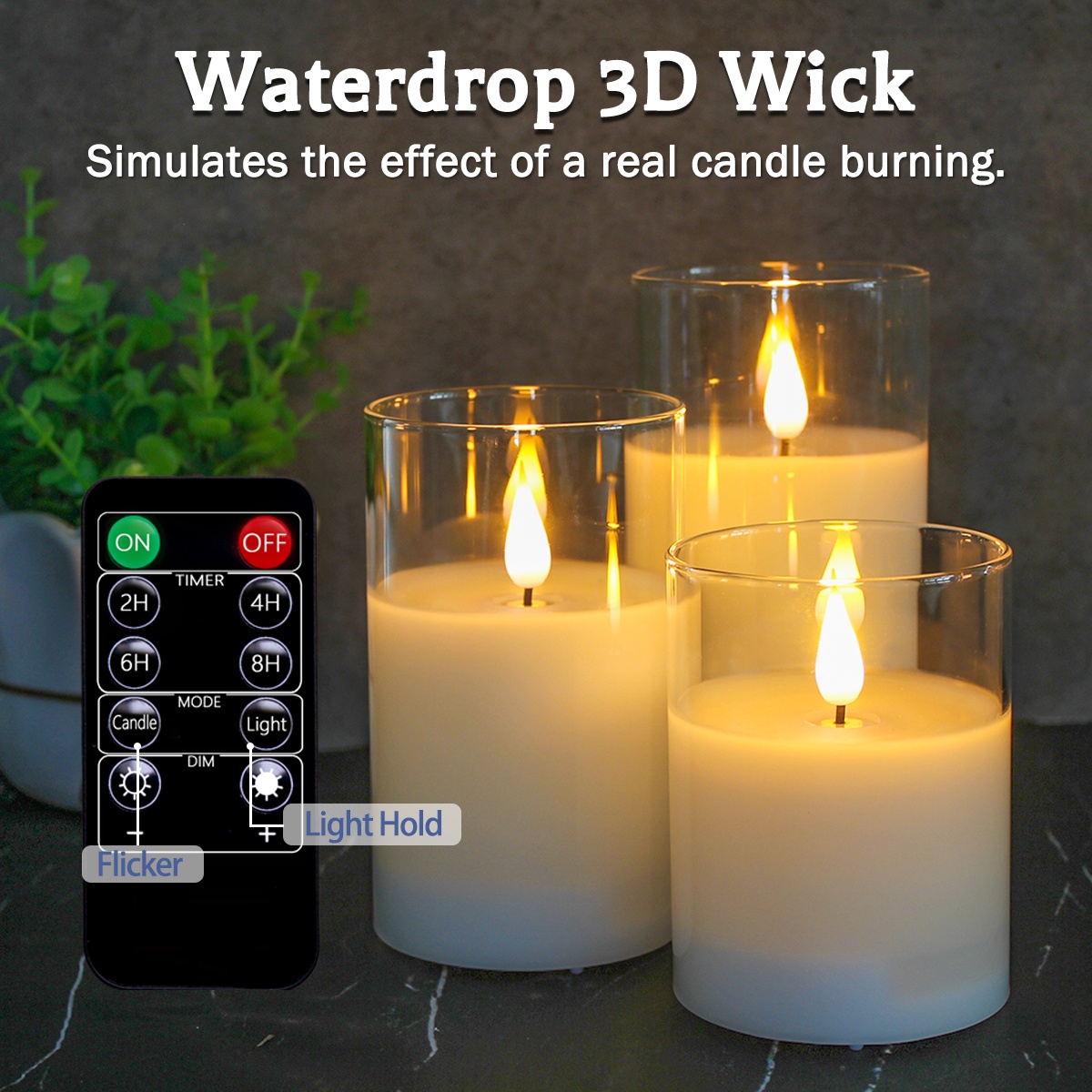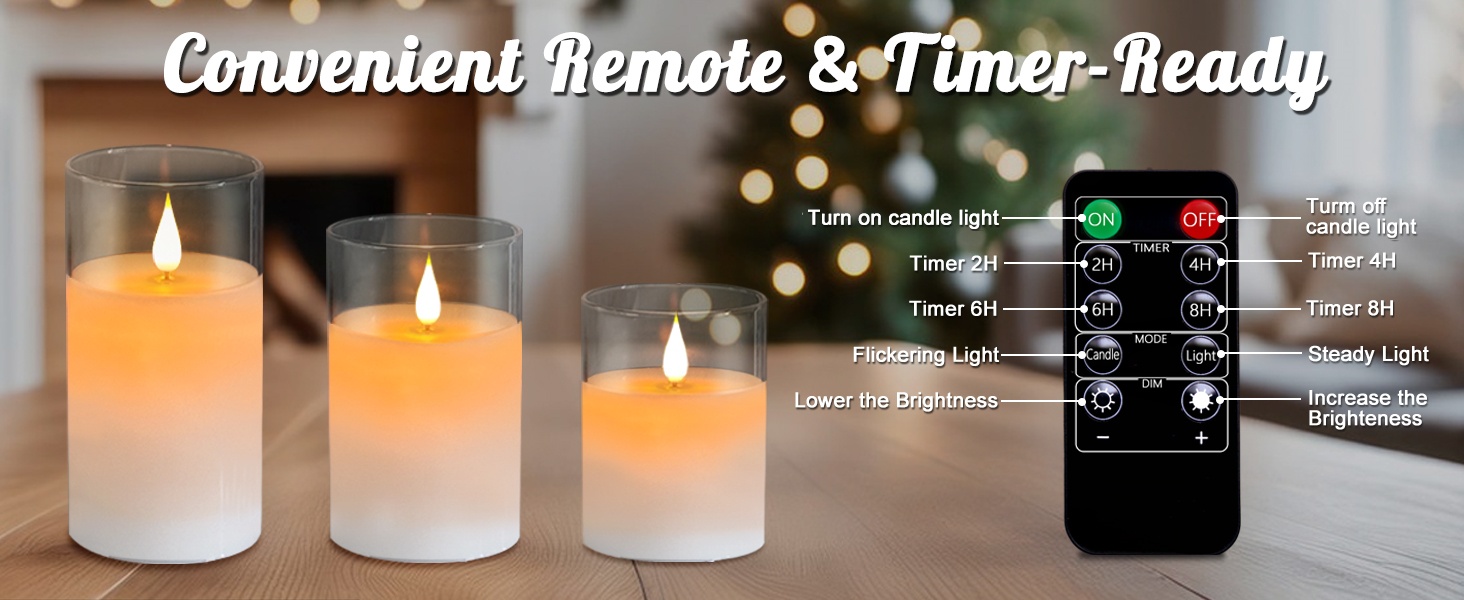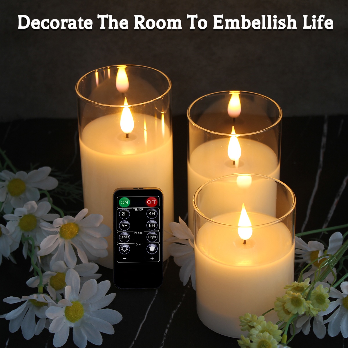 USB Rechargeable LED Glass Candle Lamp Remote Control Amber Flame Color Christmas Decorations Candle Wedding Gift Sets