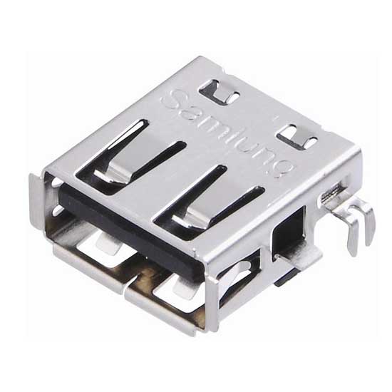 Outlined here is a USB socket that boasts a low profile single A-type design. The USB socket is equipped with a printed circuit board. It is suitable for various kinds of electronic products.