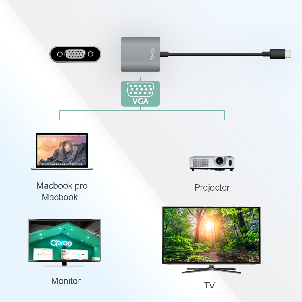 Nowadays, laptops are becoming more and more lightweight. Many large-scale notebook computers have adopted USB-C ports, and they are pursuing thin and light designs. As the expansion slot of the device has shrunk, Opro9 has developed a USB-C to VGA adapter for user convenience. It can easily transfer to projectors, displays and TVs, weighs only 20 grams, and supports 1080p@60Hz Full HD resolution, displaying synchronized video and audio on both displays. Furthermore, with the screen extension display function, it can display your screen across multiple displays, expanding the use of your desktop. It is suitable for USB-C or Thunderbolt™ 3 interface Notebook computer; simply plug and play, with no need to install drivers. Simple and convenient, with a number of international FCC, CE and RoHS certifications, product quality and stability is ensured so that you can use it with minimal fuss.