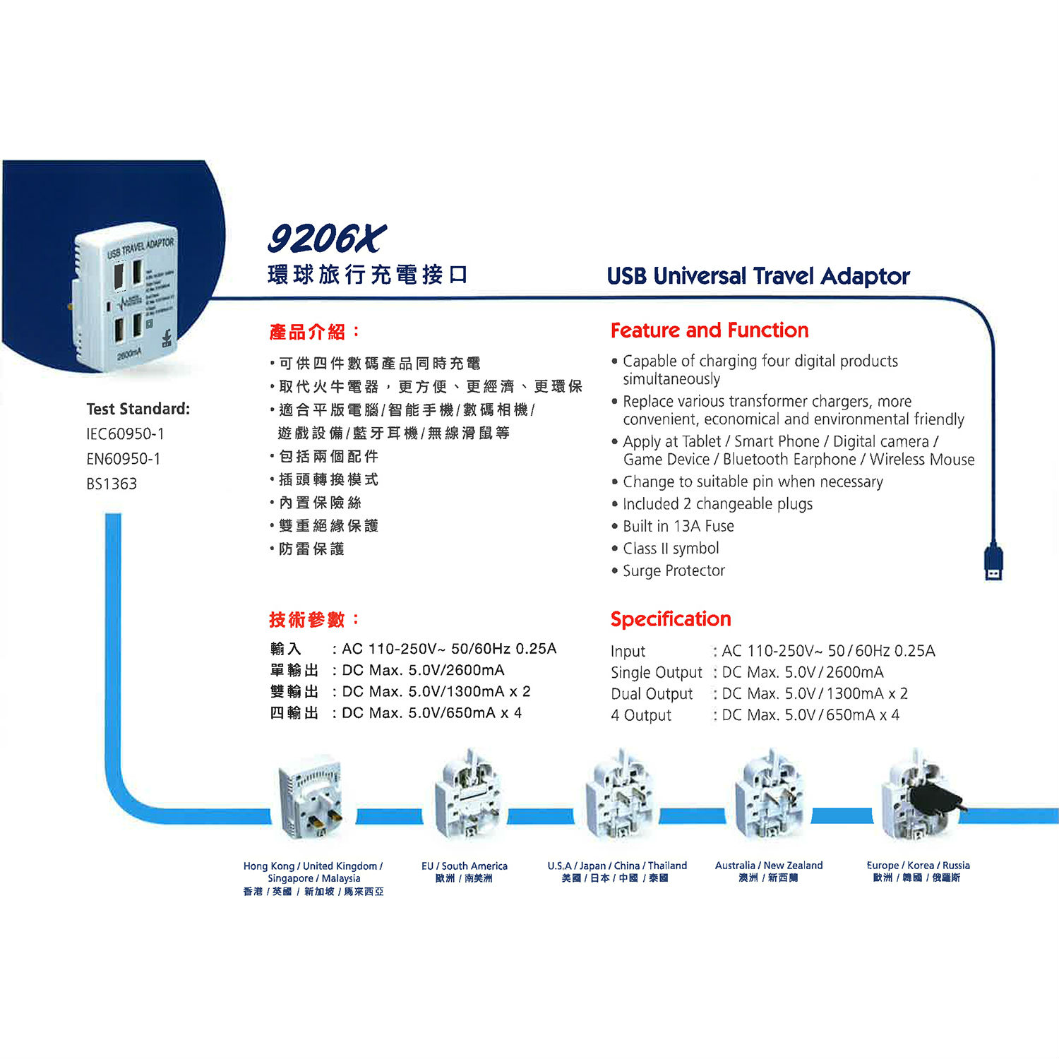 • Professionally crafted USB universal adaptor that takes care of your travel power needs when you are abroad.