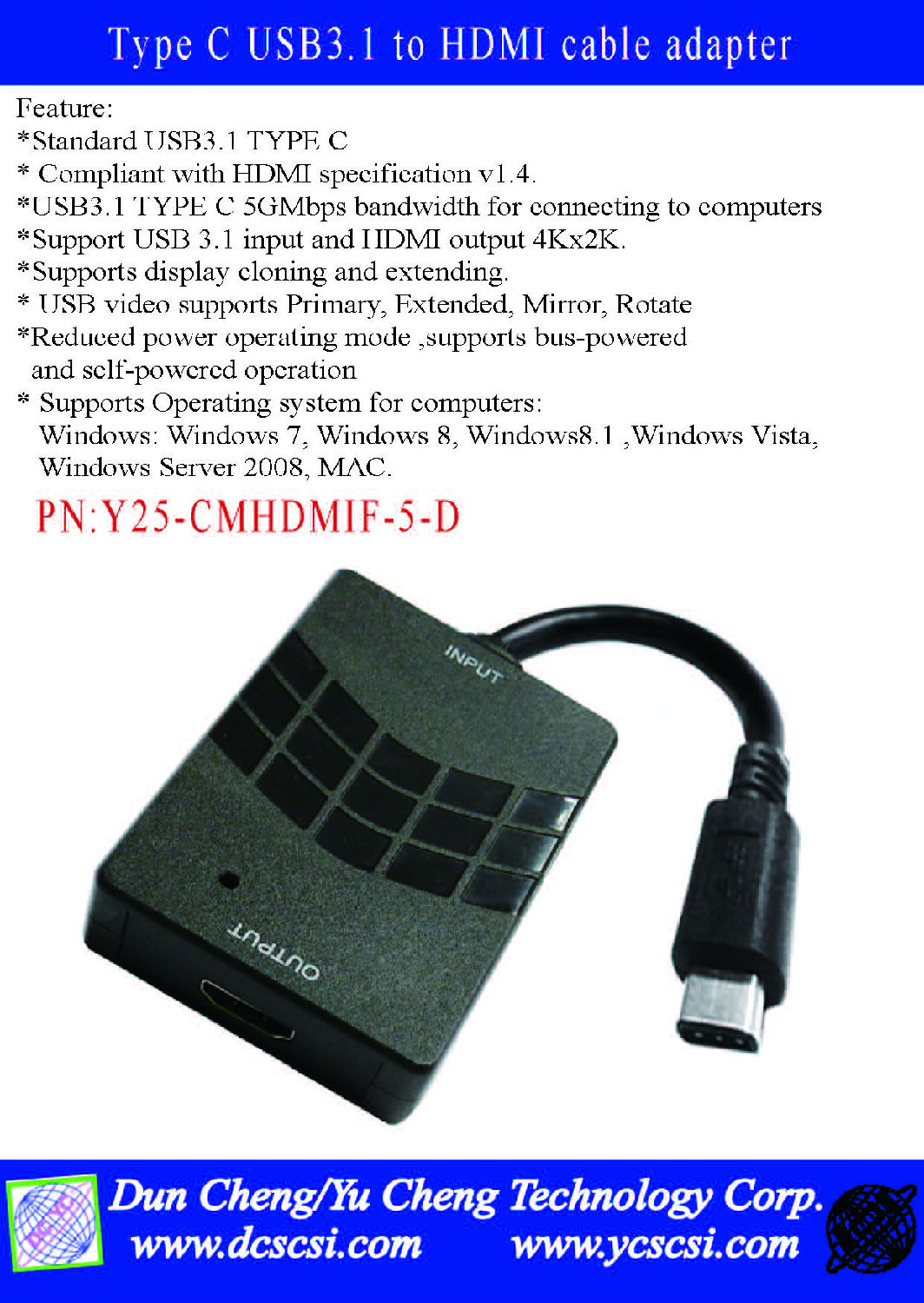USB3.1 C TYPE MALE TO HDMI FEMALE CABLE ADAPTER L:10CM