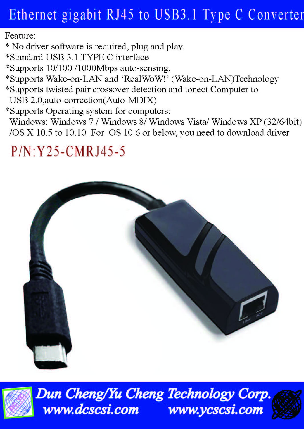 USB3.1 C TYPE MALE TO RJ45 FEMALE CABLE ADAPTER L:10CM