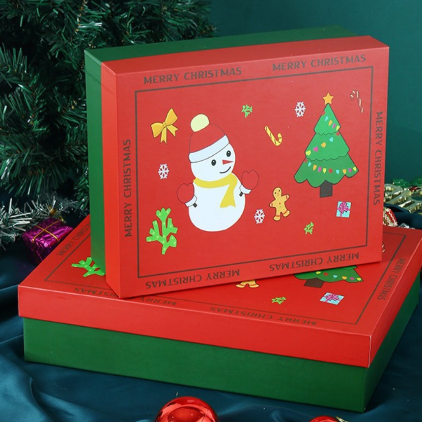 UV Coated Paper New Year Gift Box with Heaven and Earth Cover Matte Finish Cartoon Printed Christmas Packaging Foldable Type