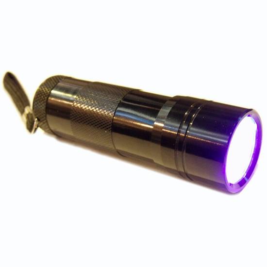 The LED flashlight casts blue and purple UV light with a wave length from 360mm-385mm. The compact and durable metal construction offers years of dependable service. This UV LED flashlight is perfect for examining banknotes, insects, diamond, chemicals, etc.