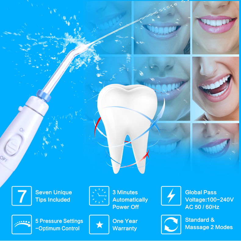 - Cleans deep between teeth and below the gumline- 7 unique tips included, suitable for family use