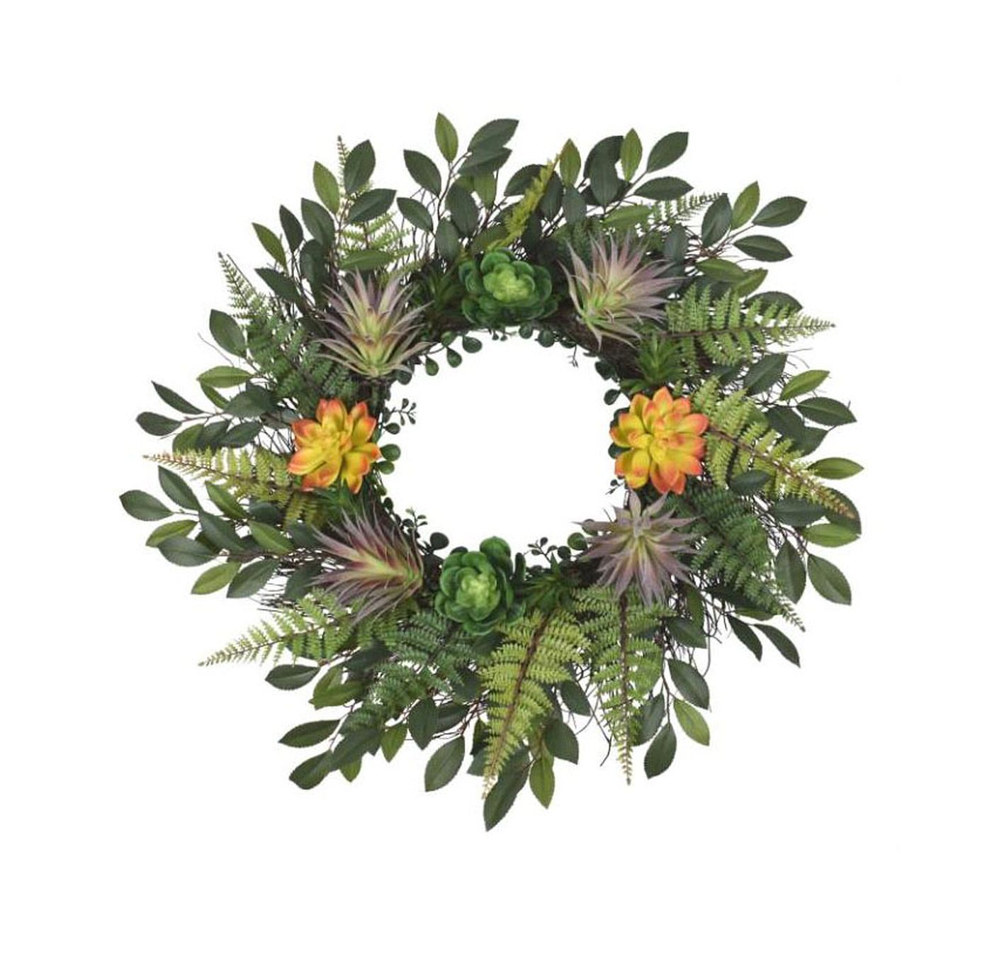 This artificial wreath is made of weather and UV resistant plastic. It creates a green accent to beautify the space. It is a good decoration for your home or workplace.