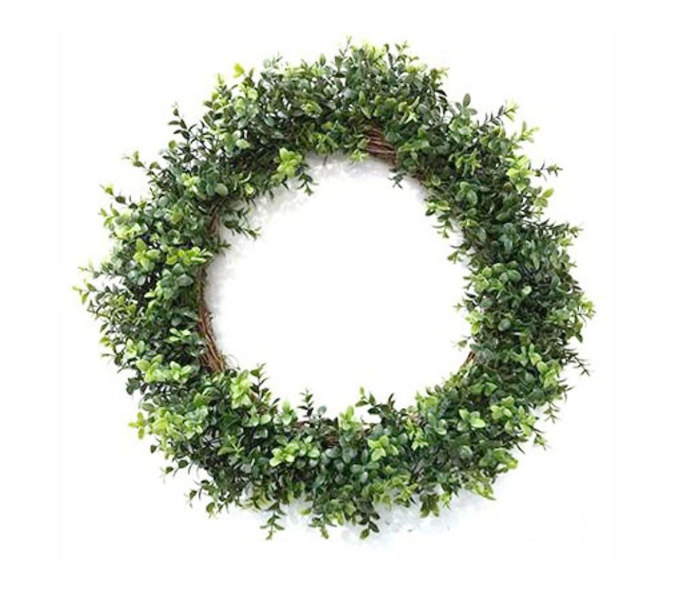 This artificial wreath is made of weather and UV resistant plastic. It creates a green accent to beautify the space. It is a good decoration for your home or workplace.