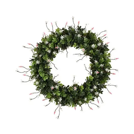 This artificial wreath is made of weather and UV resistant plastic. It creates a green accent to beautify the space. It is a good decoration for your home or workplace.