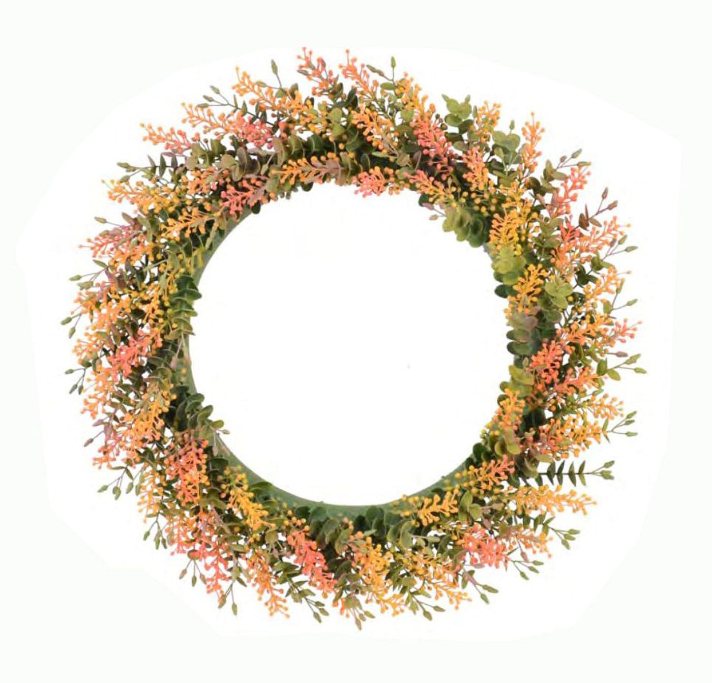 This artificial wreath is made of weather and UV resistant plastic. It creates a green accent to beautify the space. It is a good decoration for your home or workplace.