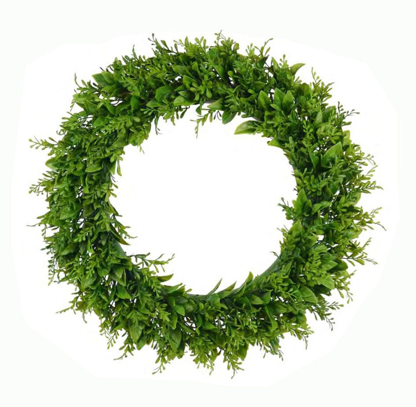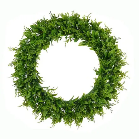 This artificial wreath is made of weather and UV resistant plastic. It creates a green accent to beautify the space. It is a good decoration for your home or workplace.