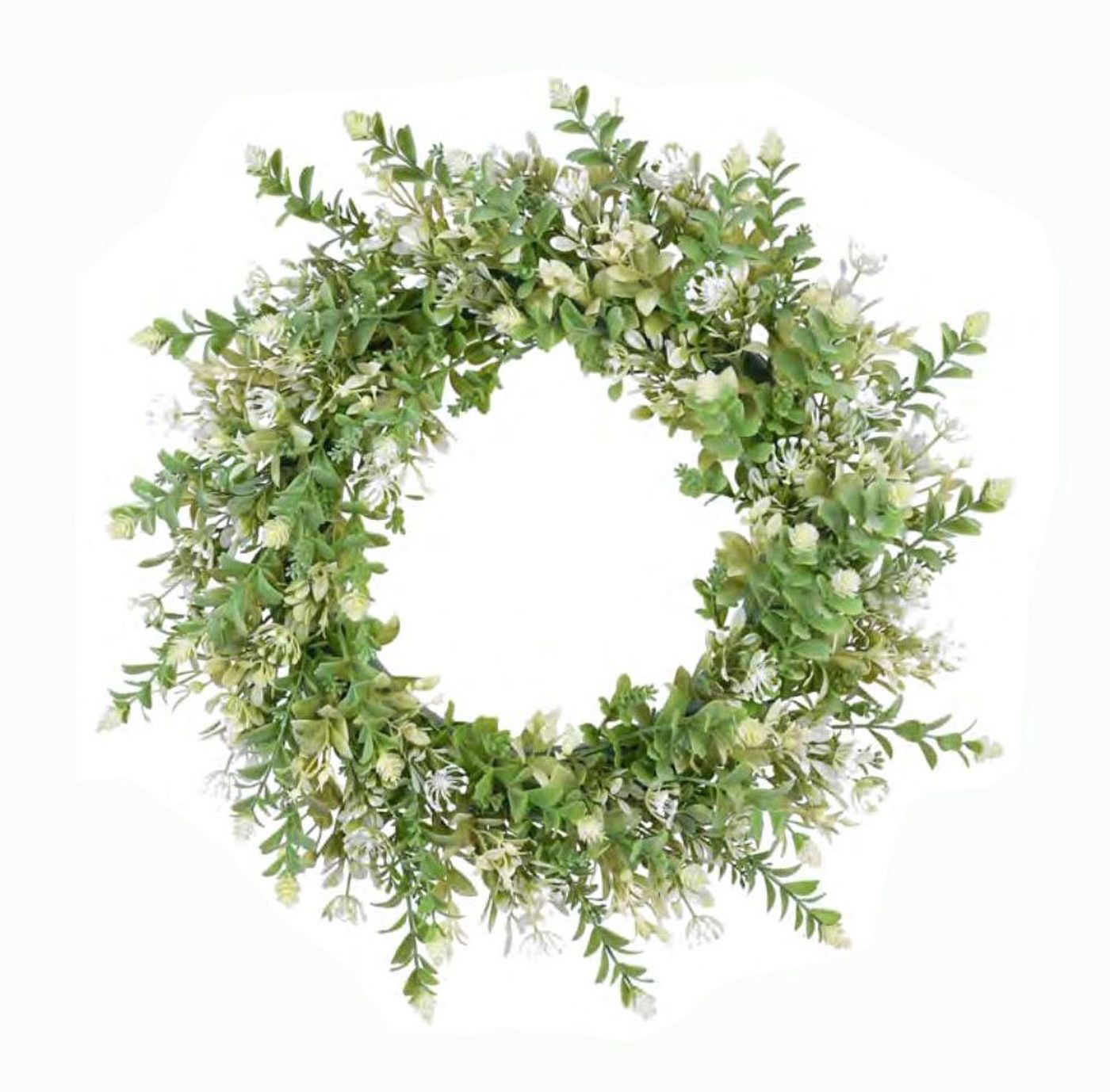 This artificial wreath is made of weather and UV resistant plastic. It creates a green accent to beautify the space. It is a good decoration for your home or workplace.