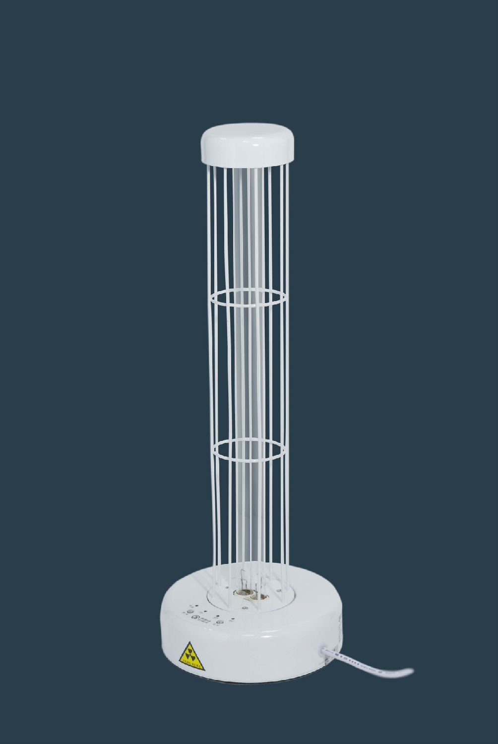 Highlighted here is a UV table light for sterilization use. This table light comes in a cylindrical shape and has a round base. It flaunts a high sterilization rate of 99.99% and is easy to control with a remote.