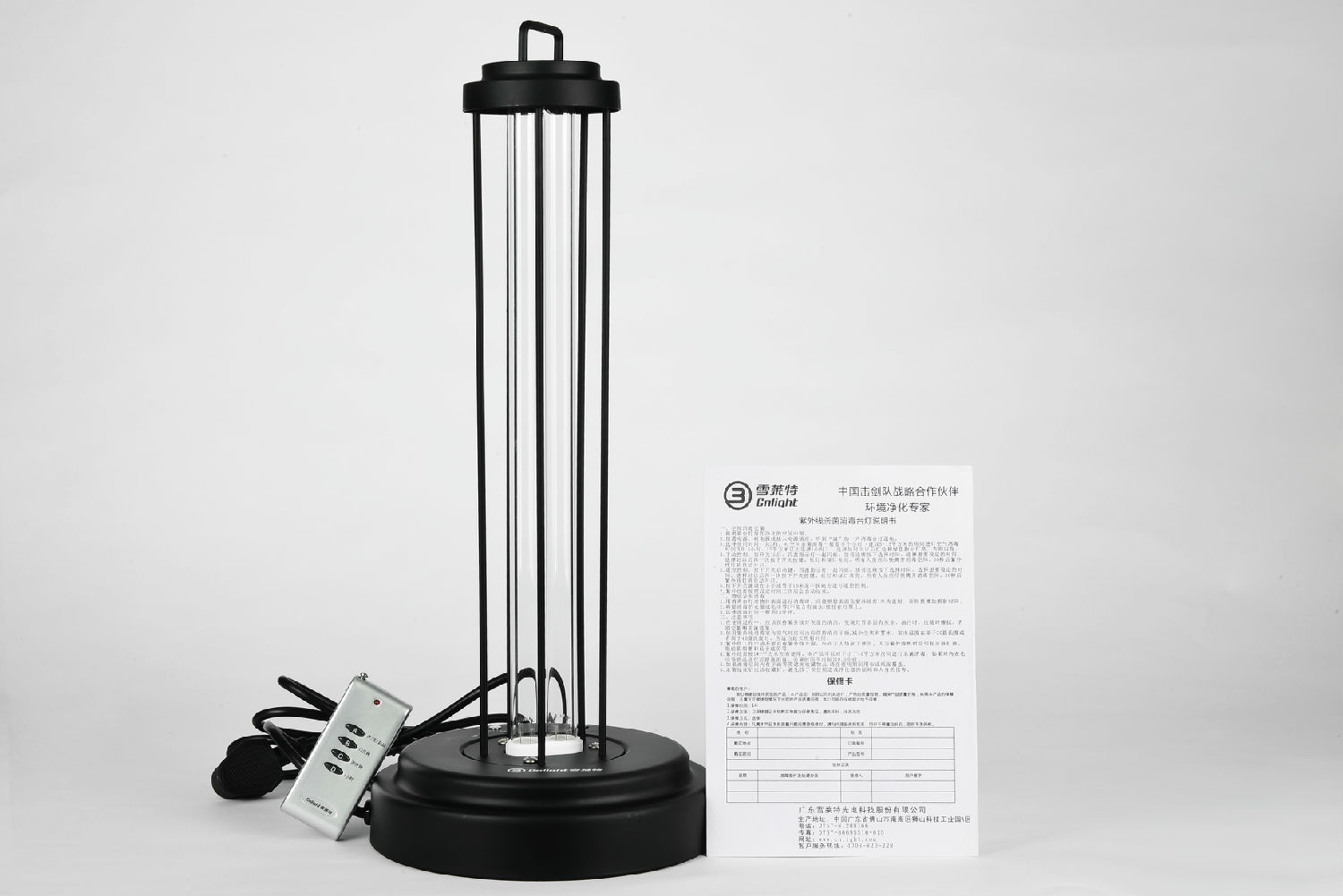 This UV table light flaunts a high sterilization rate of 99.99%. It has a cylindrical UV light tube on top and a round shaped base. With a IR remote control, this UV table light is easy to operate.