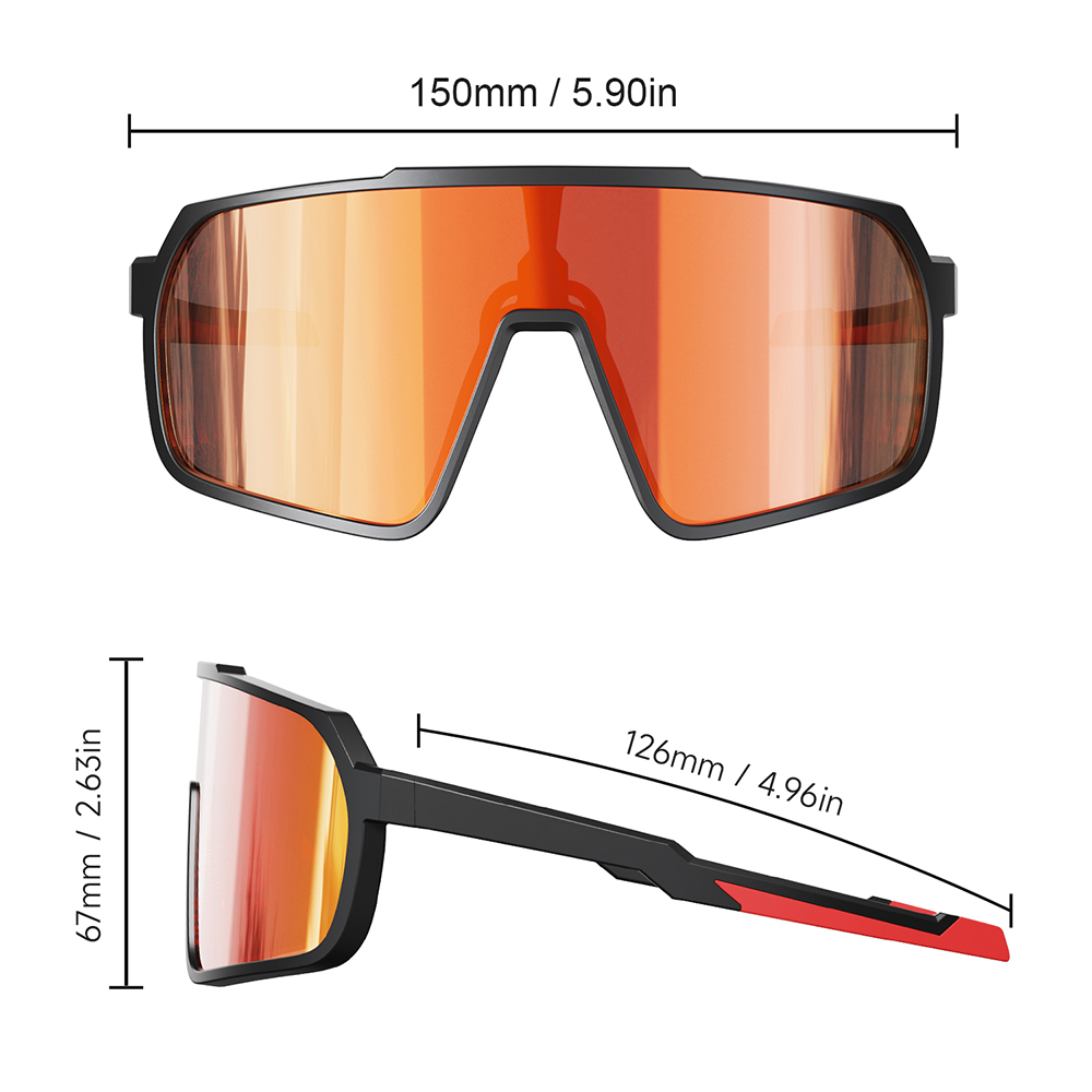 Lightweight and aerodynamic: The frame is designed with high-quality ultra-light material TR90, which is aerodynamic to minimize wind resistance, reduce facial pressure and ensure long-lasting comfort.