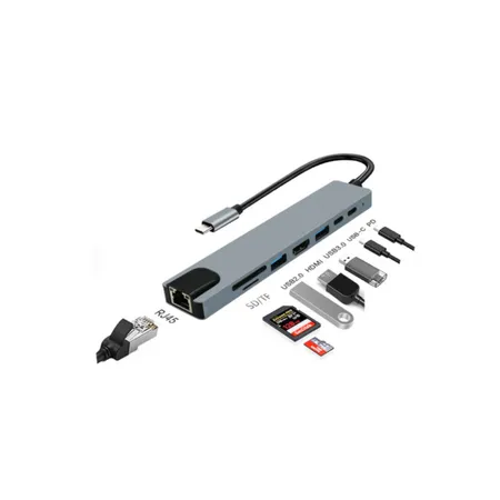 Expand your connectivity with the Ultimate 8-in-1 USB-C Hub: HDMI 4K, Gigabit Ethernet, USB-A 3.0, USB-C Data, SD/TF Card Readers, and 100W Power Delivery.