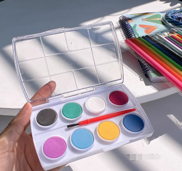4. **Paints:** A set of watercolor paints is included, complete with a palette of rich, blendable colors. These paints are ideal for creating beautiful watercolor artwork and are easy to clean up.