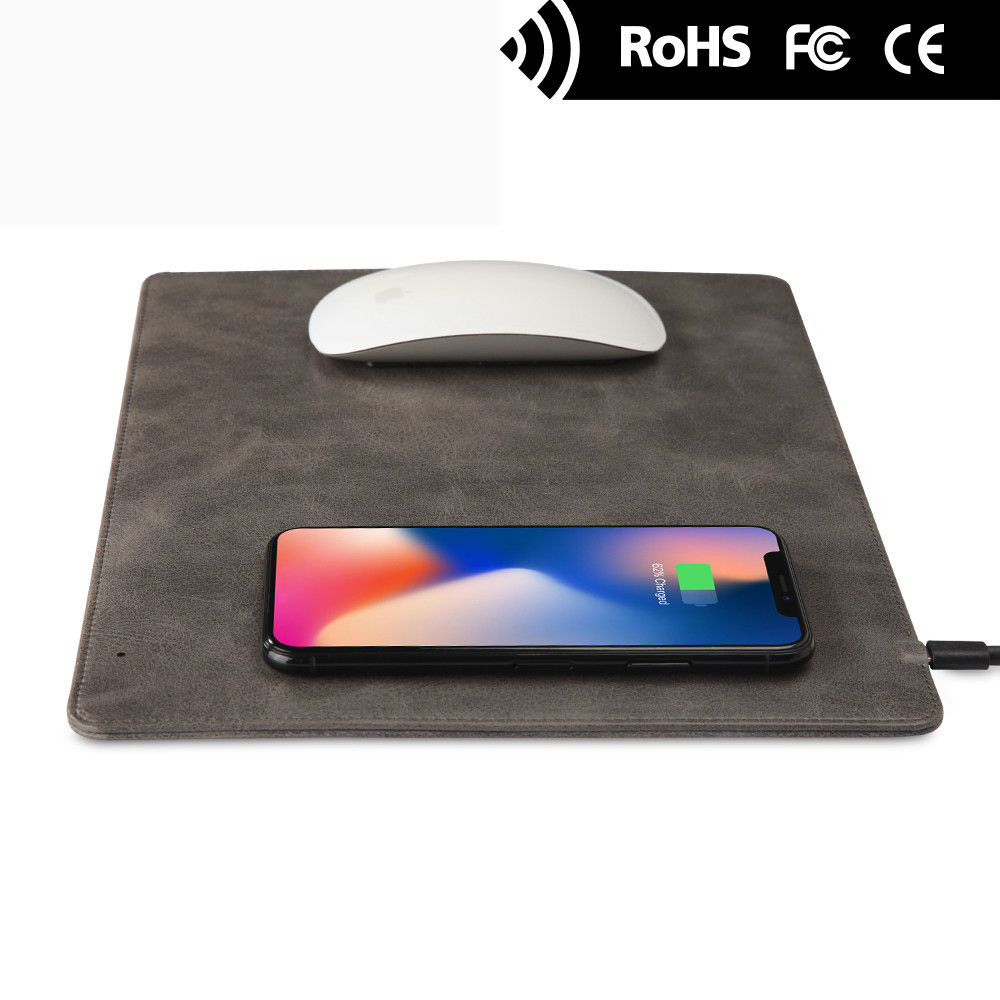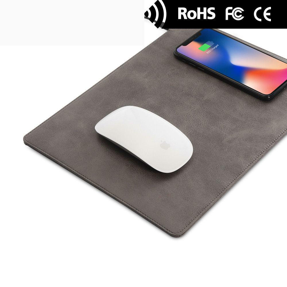 Premium PU Leather Ultra Thin Mouse Mat With Wireless Charger Functiion
