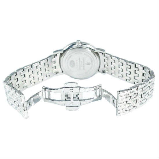 This watch flaunts an ultra-thin design with a slim case and body to minimize burden on your wrist. Finely made of stainless steel, it is durable and boasts long service life. Featuring Swiss made quartz movement, this charming watch offers reliable performance with accurate hour, minute, second and date display.