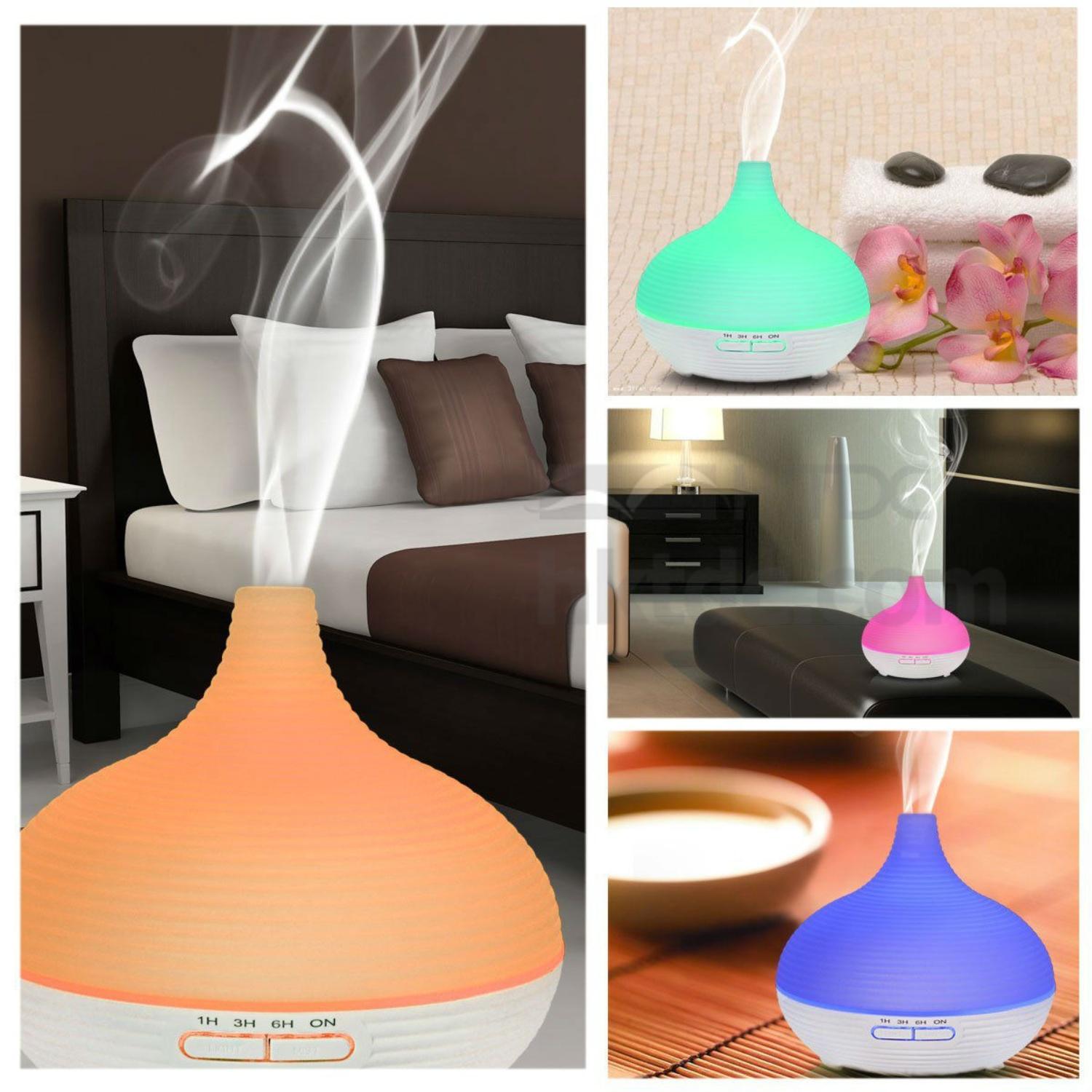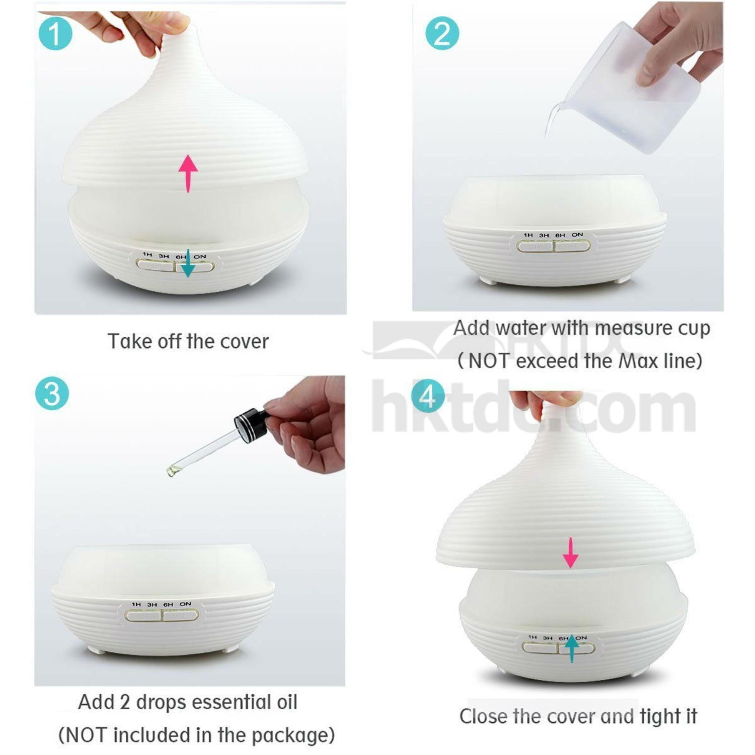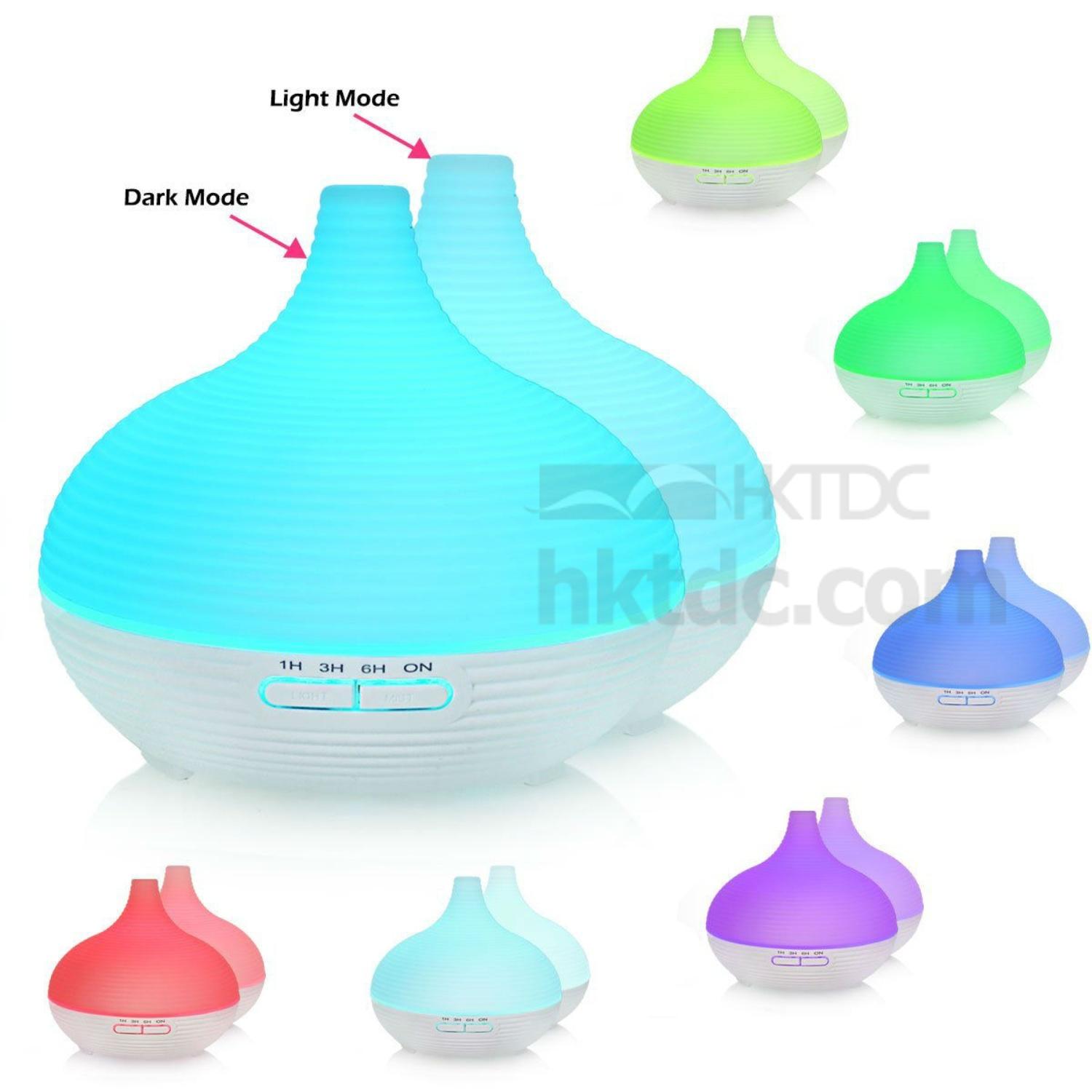 Features include 7 color changing lamps for your choice, nightlight, programmable on/off cycles and auto shut-off. Once the water runs out, it will be auto shut-off to protect the device.