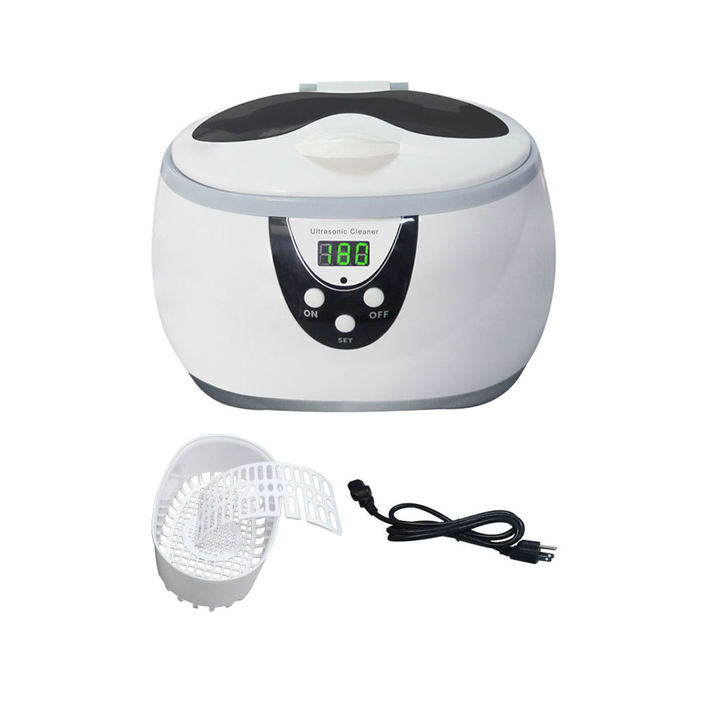 Highlighted here is a digital ultrasonic cleaning machine with CE certification to boast safe operation. It possesses a two-tone, elegant design with a tank capacity of 600 ml, which is a compact size to be placed at home or jewelry shop counters. This machine offers a 5 digital timer cycle setting for added convenience.