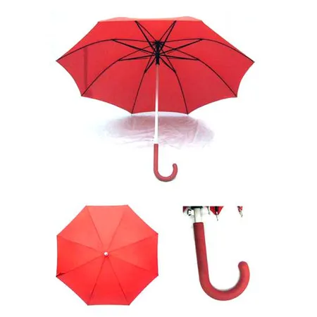 This is a straight umbrella. This umbrella is designed with auto open and with glassfiber. The shaft of this umbrella is made of aluminum, durable product.
