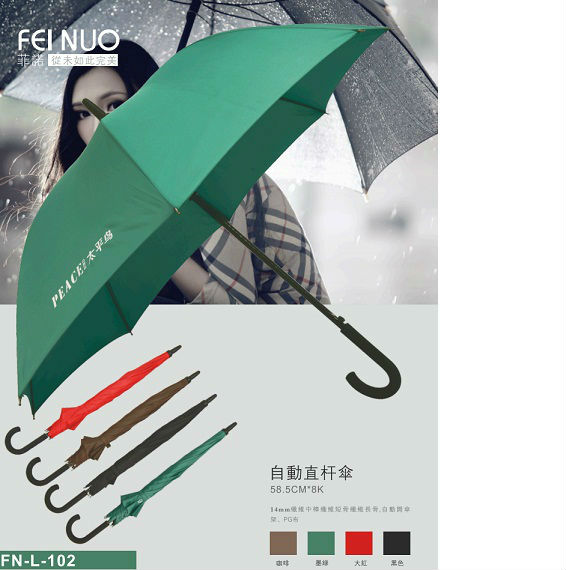 Stay dry in the rain with this 8K straight umbrella. It has a crook handle and has a button for automatic opening. This umbrella has a lightweight and durable frame and can be printed with brand name on the canopy.