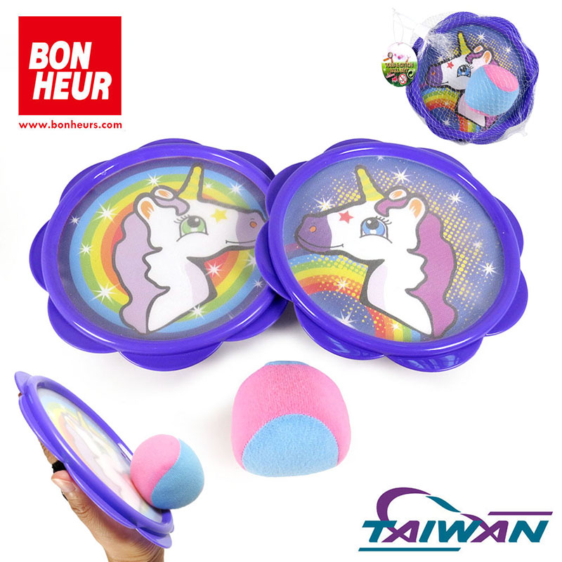 The Unicorn Catch Ball Set is a fun and magical game for kids of all ages. This set includes two colorful unicorn-themed catchers and a soft, lightweight ball. The catchers feature a comfortable grip handle and a large net to easily catch and throw. Great Interactive toy for indoor or outdoor play.