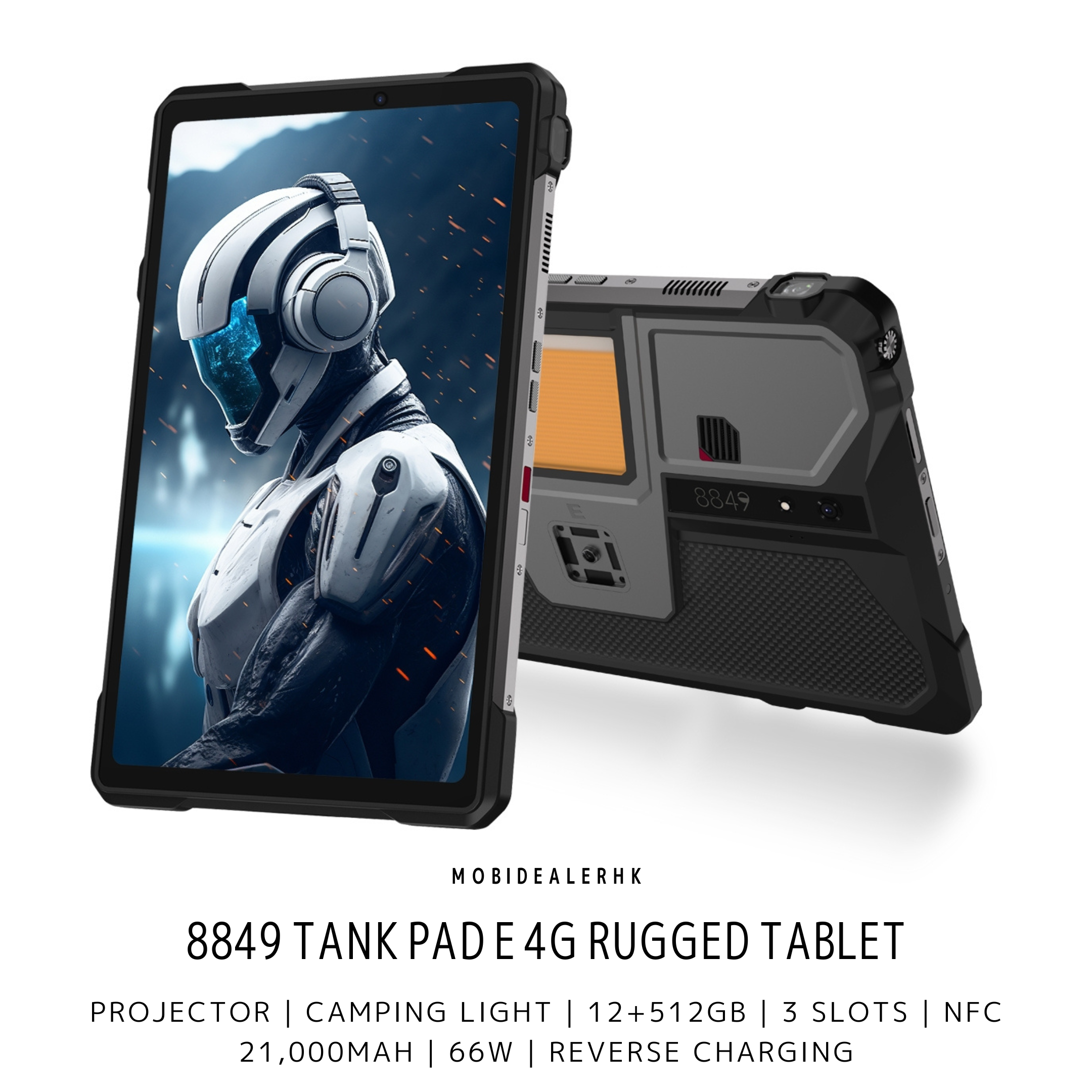Equipped with a 100 - Lumens DLP projector, a 21000mAh battery supporting 66W fast - charge and up to 24GB expandable RAM, the 8849 TANK Pad E serves outdoor workers, business presenters and outdoor lovers well.