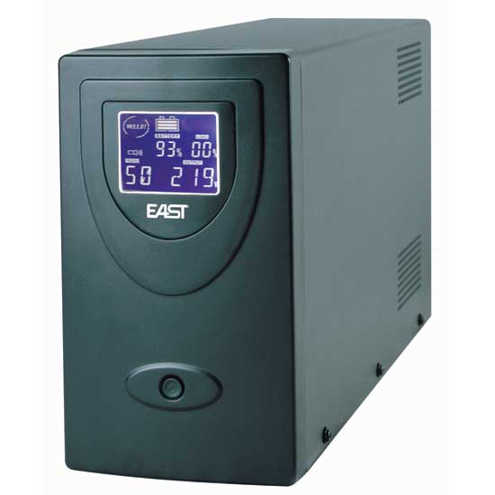 Featured is a UPS with an LCD display. The device provides uninterruptible power supply when the input power source fails during an emergency. This UPS system provides battery backup when the electrical power drops below the threshold.