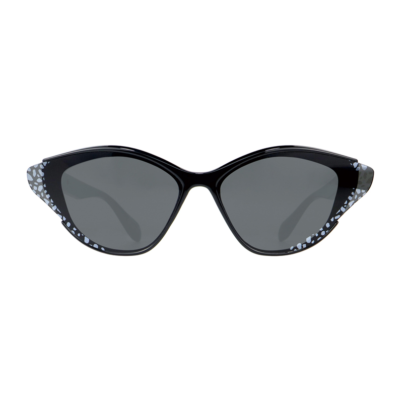 These stylish shades feature a distinctive cateye shape that is both bold and feminine, giving you a look that commands attention wherever you go. The sleek black frame and subtle detailing on the temples add a touch of sophistication, making these sunglasses perfect for any occasion.