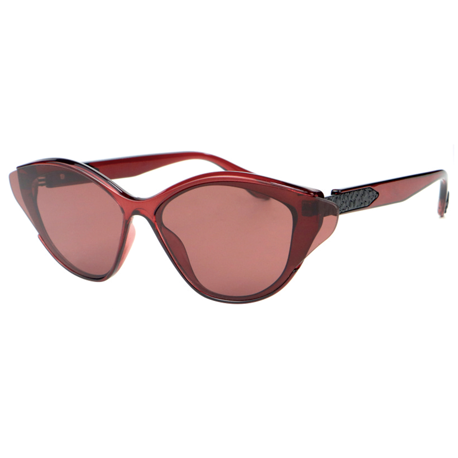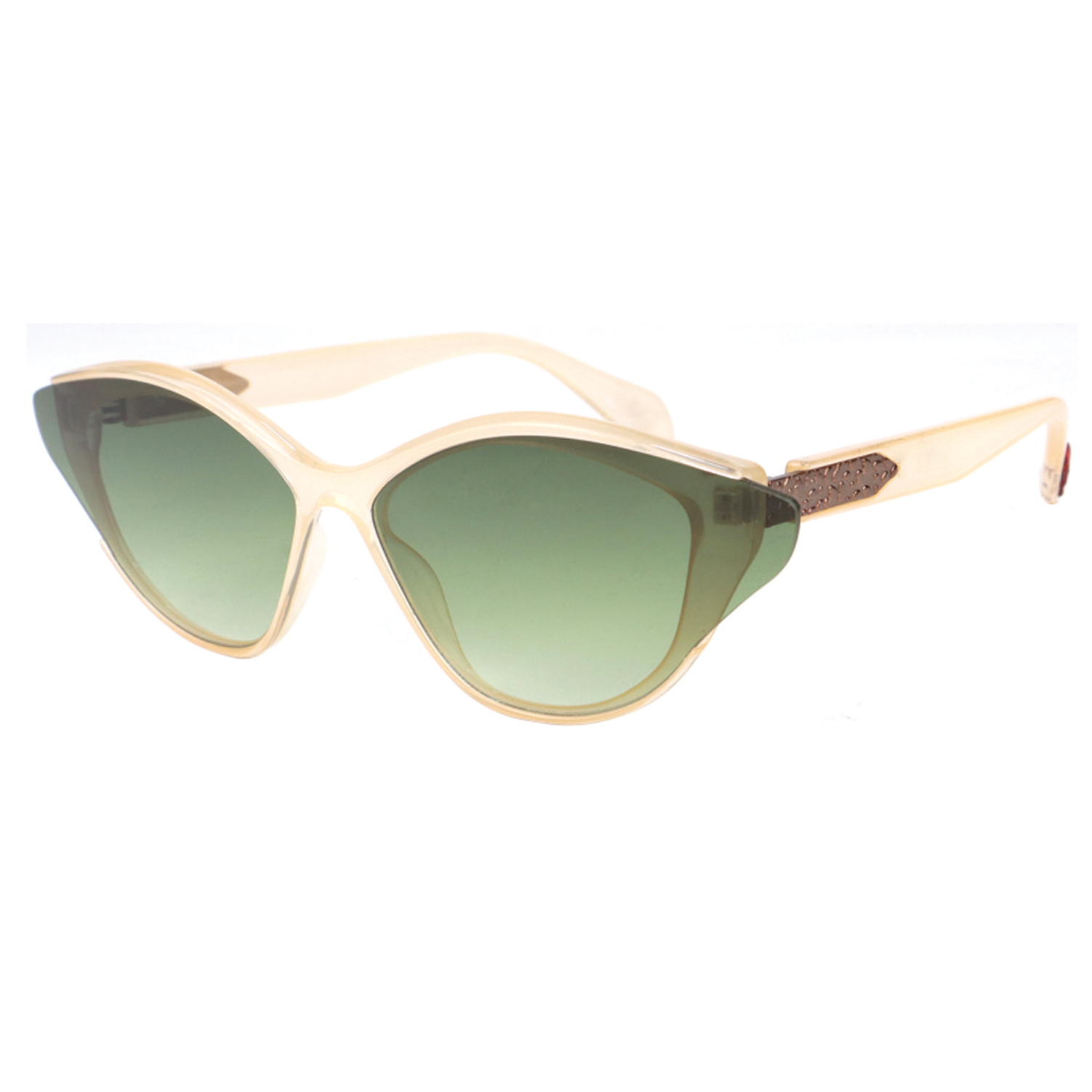 These stylish shades feature a distinctive cateye shape that is both bold and feminine, giving you a look that commands attention wherever you go. The sleek black frame and subtle detailing on the temples add a touch of sophistication, making these sunglasses perfect for any occasion.