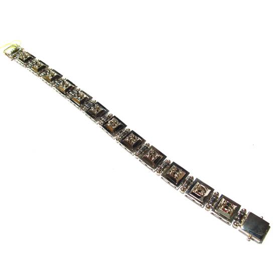 This is a diamond bracelet of unisex design. In a plain designed of the topics of geometric squares, the diamond bracelet is stylish and handsome. The diamond bracelet is a valuable piece also suitable for men.