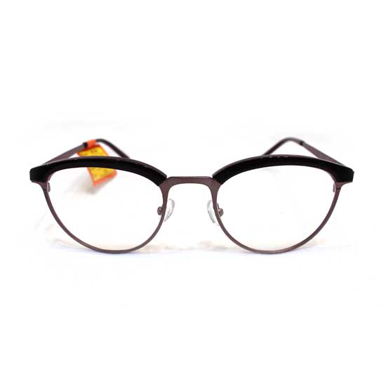 This pair of eyeglasses is constructed from stainless steel for a contemporary touch. It is ornamented with two black acetate rims at the top for uniqueness. This pair of stylish eyeglasses is suitable for both men and women.