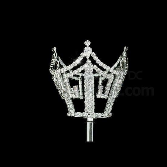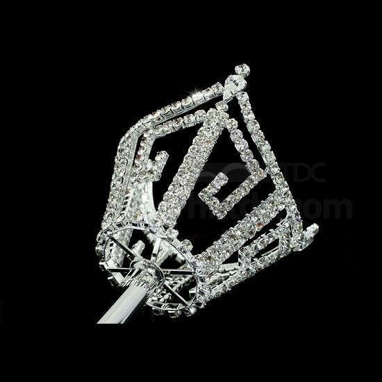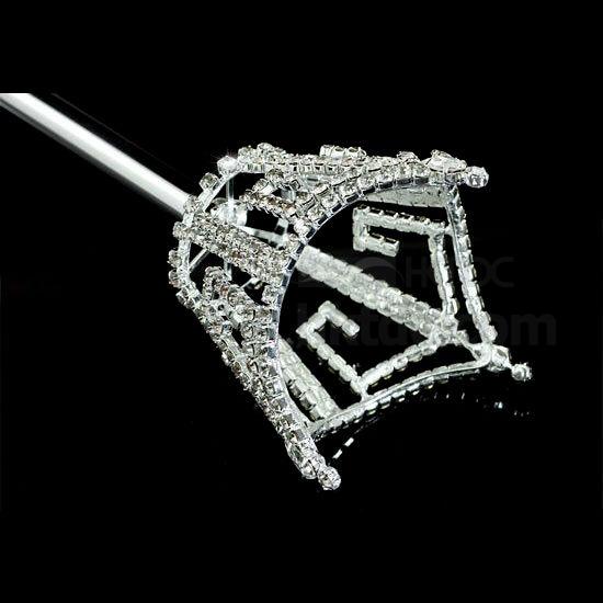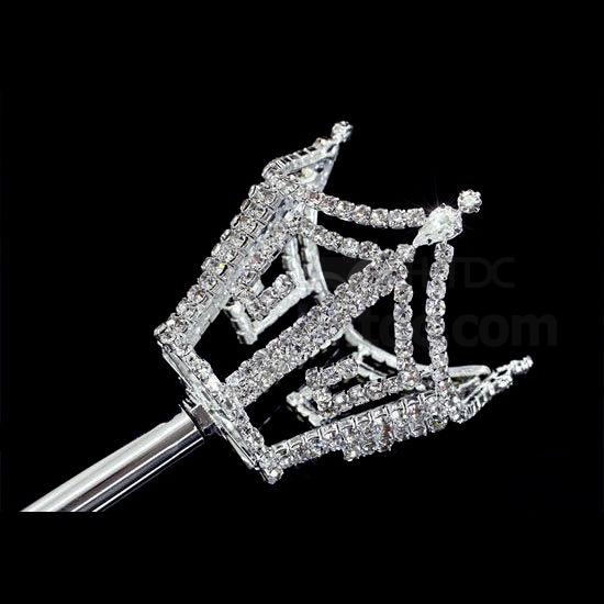 • Unisex king queen crown men women crystal silver scepter wand