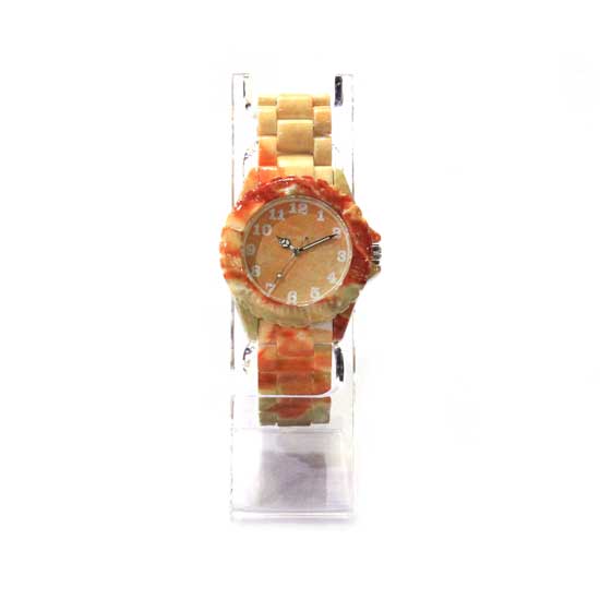 This unisex quartz analog watch features an orange and beige exterior, lightening up your mood effortlessly. The round dial is designed with Arabic numeral hour markers in white for easy reading. This alluring wristwatch is finished with a bracelet band for a sophisticated look.