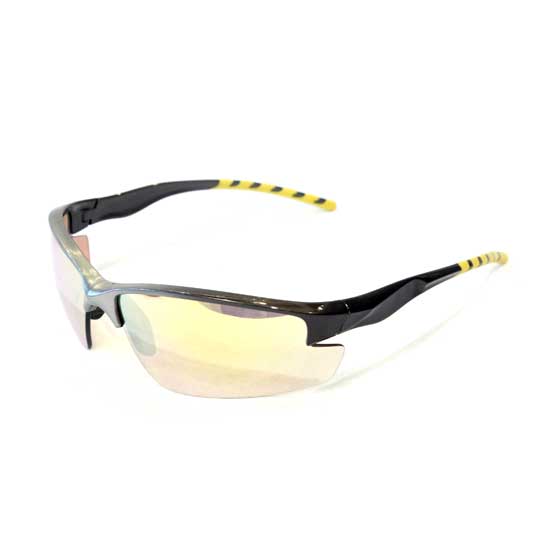 This pair of glossy half-rim sports sunglasses is made for unisex use. It is constructed from PC for a long service life. The temple tips come with yellow patterns for a vibrant finishing touch.